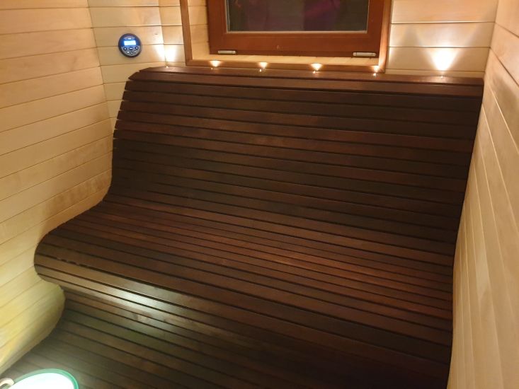 Termotöödeldud puit ei mängi, ei lähe kõveraks ega mädane. Seda soovitatakse kasutada eelkõige lava puhul, sest seda osa saunast kasutatakse kõige rohkem. Termotöödeldud puitu võib panna ka seljatoeks, et vältida heledate seinte määrdumist.